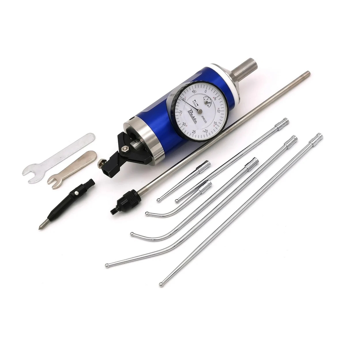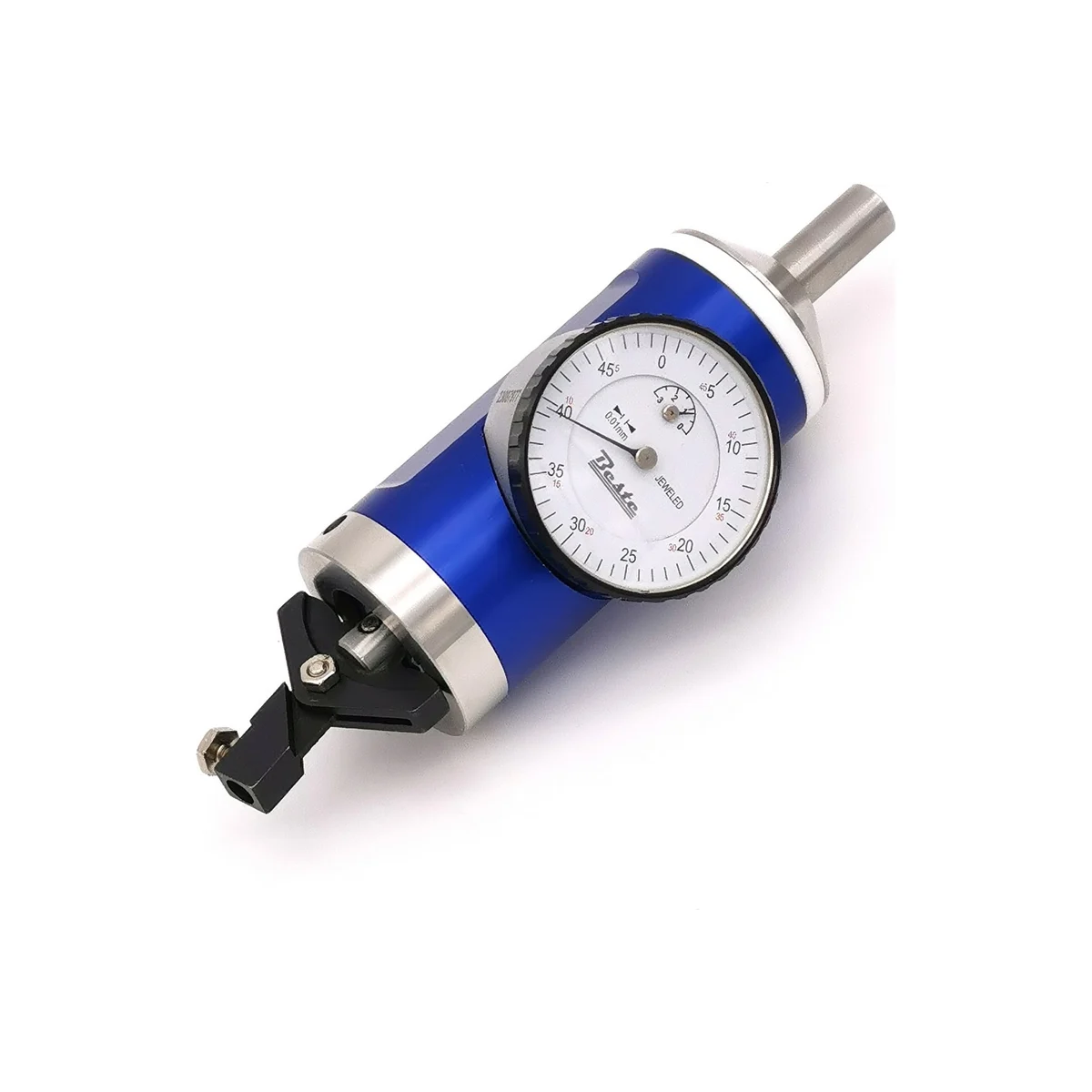 Индикатор-центроискатель BESTE 0-3мм, 0.01 мм AC00301110 используется для позиционирования шпинделя фрезерного станка относительно заготовки. Хвостовик вместе с индикаторным механизмом и щупом может свободно вращаться внутри корпуса устройства с индикаторной шкалой.