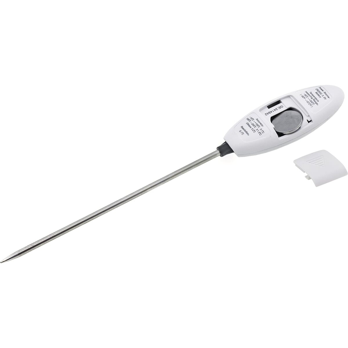 Контактный термометр (тип - игла), в основном используется для измерения температуры пищевых продуктов. Зонд термометра выполнен из нержавеющей стали высшего качества. При помощи термометра с зондом можно точно отслеживать температуру приготовления пищи (в духовке, на гриле, в воде). Термометр также применяют, в различных сферах деятельности (работа с отопительным и холодильным оборудованием, при обработке пластиков и резины). Может также приняться для работы с растениями - поможет узнать температуру у корневища. Простота эксплуатации достигается простому управлению одной кнопкой на панели. Помимо измерения текущих значений температуры предусмотрено удержание максимальных и минимальных показателей нагрева или охлаждения. Благодаря функции автоматического выключения увеличен срок службы батареи.