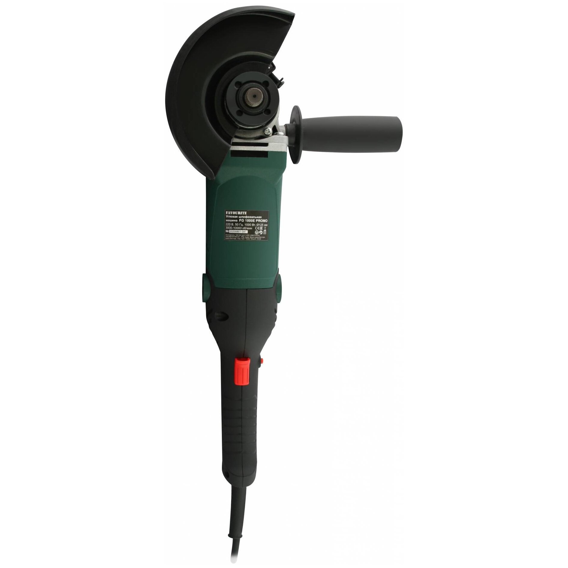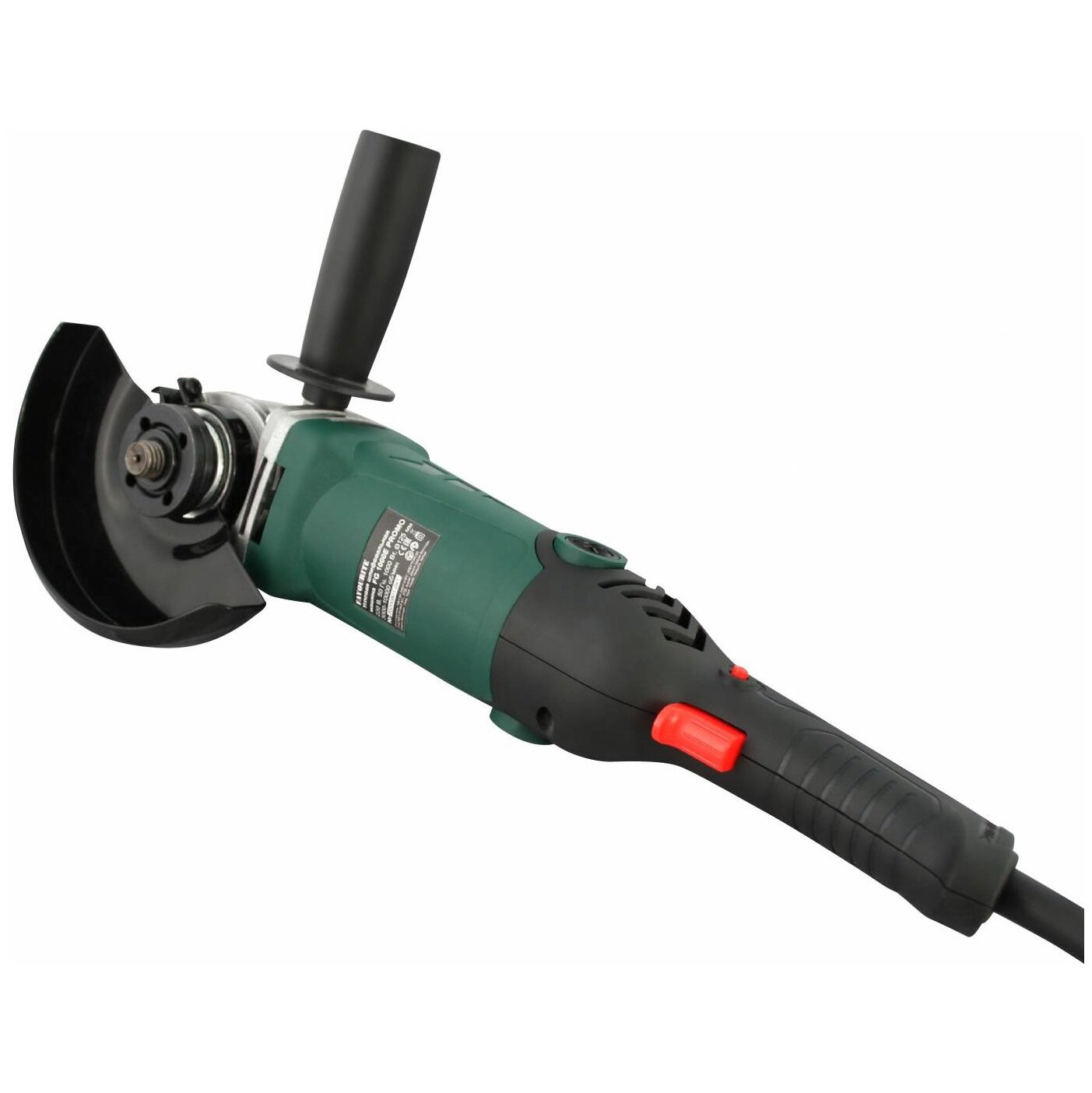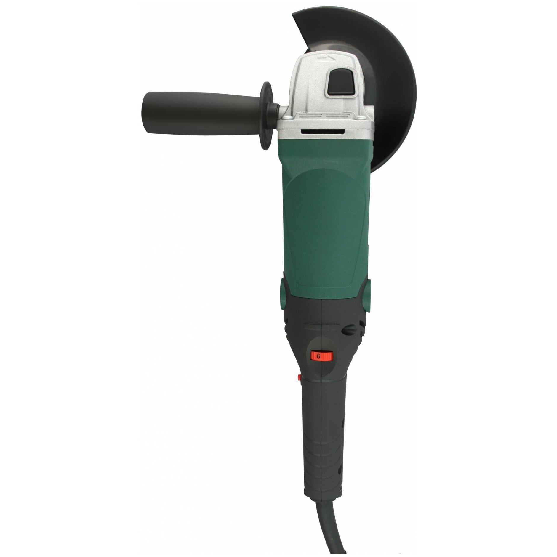 угловая шлифмашина, боковая рукоятка, защитный кожух, ключ, угольные щетки, инструкция, коробка