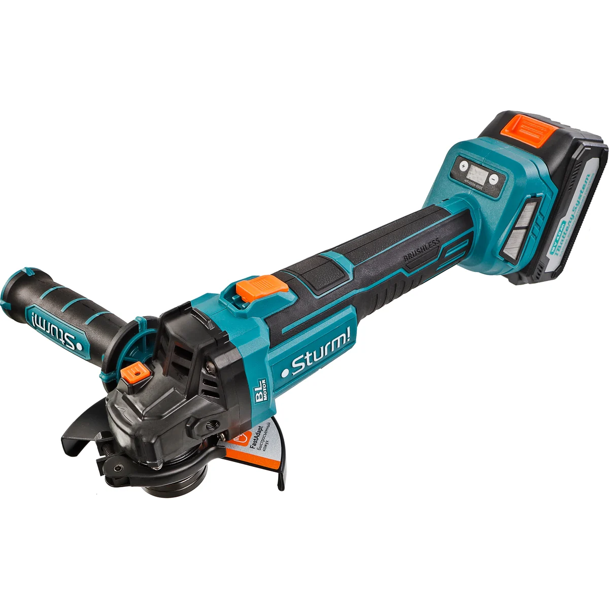 УШМ аккумуляторная CAG18125BLE Sturm! 18В является частью системы 1BatterySystem, обеспечивающей совместимость одного и того же аккумулятора с целым рядом наименований инструмента.