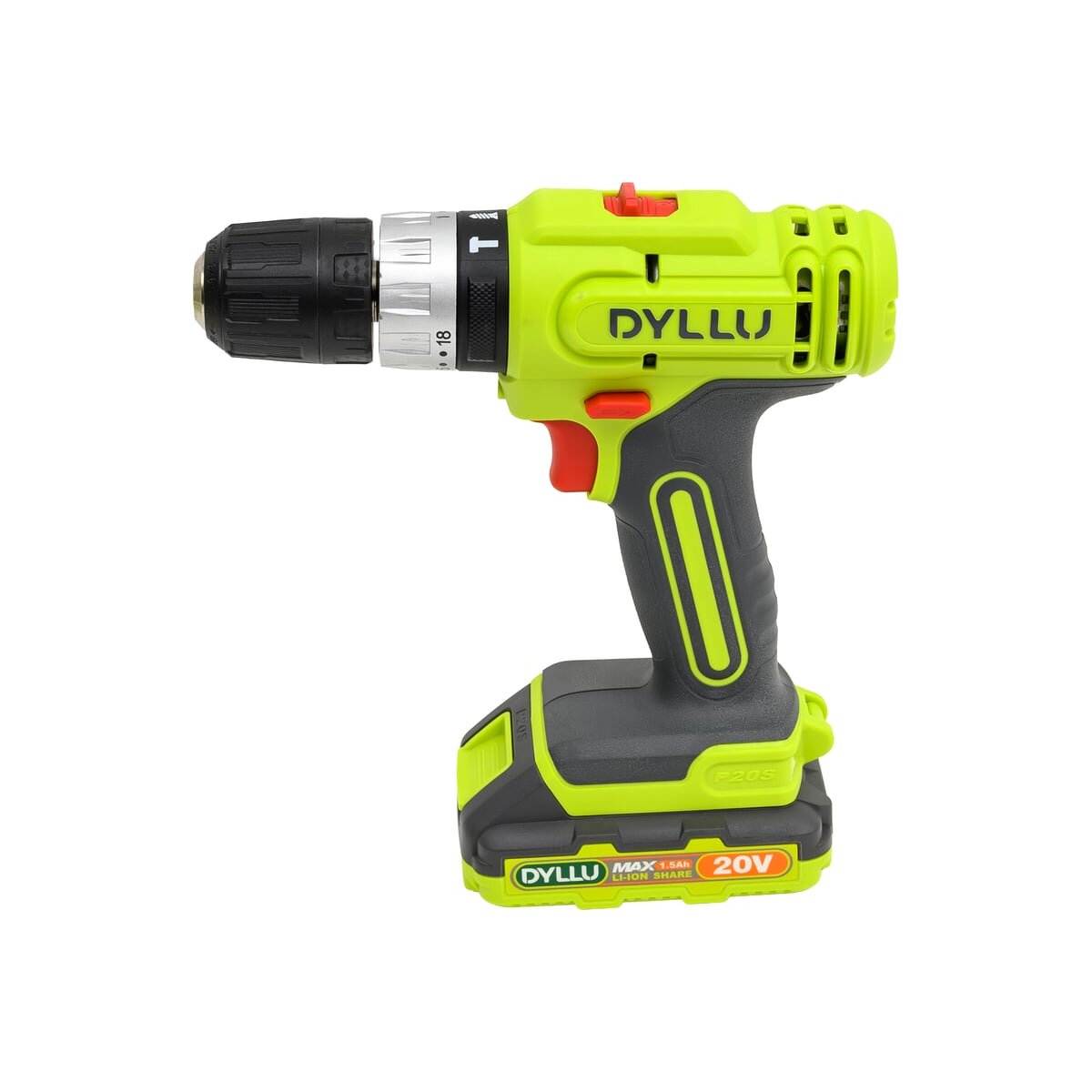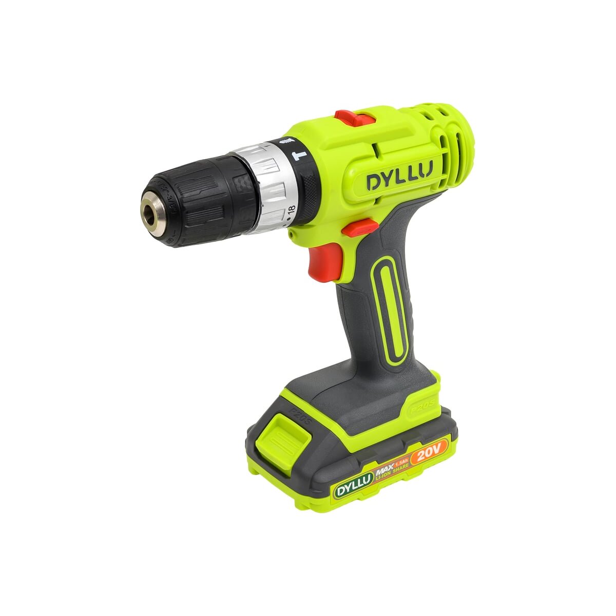Аккумуляторная дрель-шуруповерт DYLLU DTCDP521 также работает от напряжения 20В и имеет аналогичные характеристики: скорость холостого хода 0–400–0–1500 об/мин, максимальный крутящий момент 35Нм и пластиковый патрон с диапазоном зажима 0.8–10 мм. Регулировка крутящего момента (15+1) и двухскоростной режим работы обеспечивают гибкость при выполнении различных задач. Встроенная светодиодная подсветка помогает работать в условиях плохого освещения. В комплект входит аккумулятор емкостью 1.5Ач и зарядное устройство. Встроенная светодиодная подсветка.