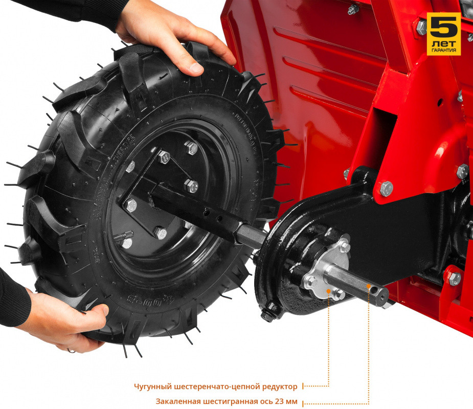 Комплект поставки: Культиватор 1 шт. Сошник 1 шт. Транспортировочное колесо 2 шт. Нож фрезы 24 шт. Ось фрезы 4 шт. Крепеж для сборки фрез 1 комп. Хомут крепления тросов 2 шт. Колесо 2 шт. Комплект ключей 1 комп. Руководство по эксплуатации 1 экз.