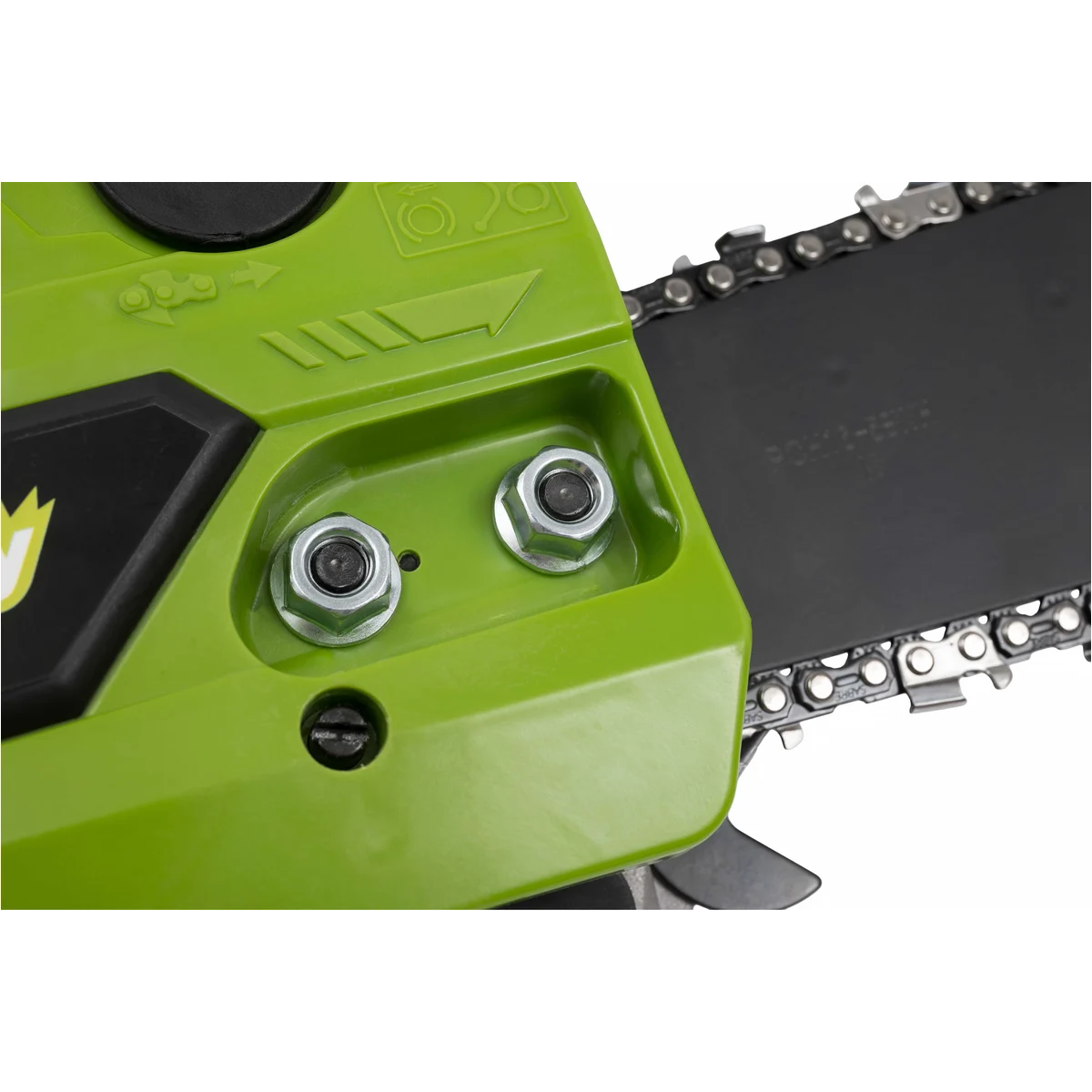 - Автоматическая система смазки цепи обеспечивает равномерную подачу масла для безопасной и эффективной работы.