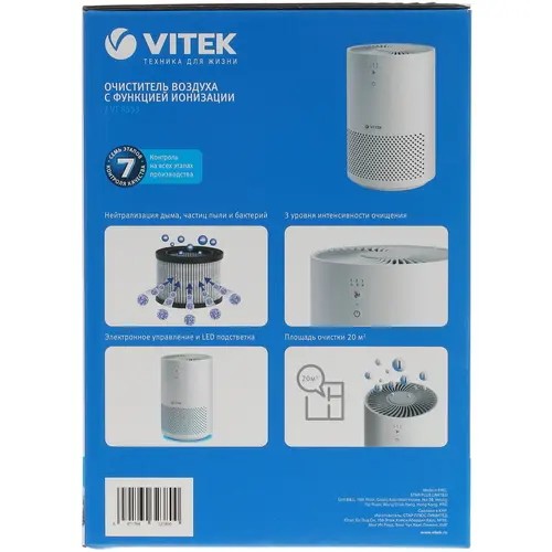 Очиститель воздуха Vitek VT-8553 выполнен в компактном корпусе лаконичного белого цвета и предназначен для поддержания чистоты воздуха в небольшом помещении. Применение HEPA-фильтра помогает эффективно избавляться от бактерий, пыли, неприятных запахов. Электронное управление позволяет выбирать оптимальный скоростной режим вентилятора простым нажатием кнопки и контролировать параметры с помощью световых индикаторов. LED-подсветка корпуса создает в помещении особую приятную атмосферу. Очиститель воздуха Vitek VT-8553 работает при подключении к электросети.