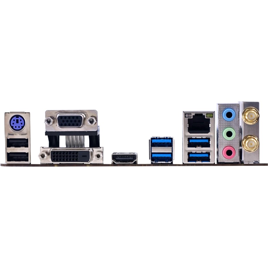 PS/2, 2 x USB 2.0, 4 x USB 3.2 Gen1, VGA, DVI, HDMI, RJ-45