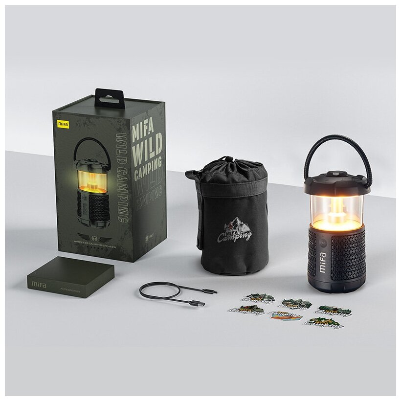Водонепроницаемый Bluetooth-динамик Mifa Wildcamping с фонариком. 2 режима освещения. Поддержка Bluetooth 5.3.