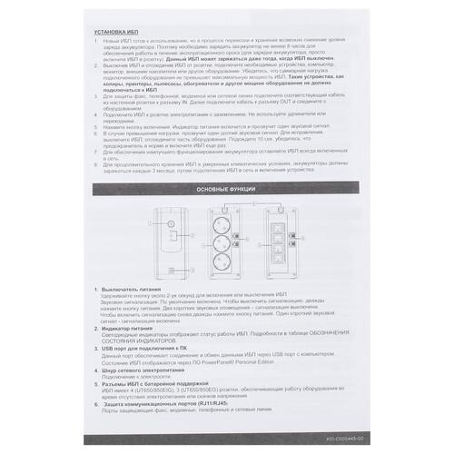 ИБП CyberPower UT850EG позволяет обеспечить надежное резервное питание для коммуникационного, сетевого, компьютерного оборудования, а также различных электронных устройств от разных нарушений и сбоев в сети. Устройство поддерживает защиту линии передачи данных, защиту модема, от высоковольтных импульсов, от перегрузки, телефонной линии. Мощность прибора составляет 850 ВА, что соответствует 425 Вт.