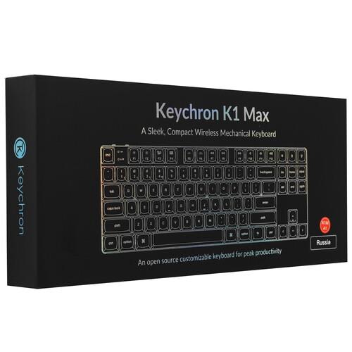 Keychron K1 Max [K1M-A1-RU] — это сверхтонкая беспроводная механическая клавиатура. Она поддерживает 2,4 ГГц, Bluetooth и проводное соединение. Клавиатура полностью программируемая.