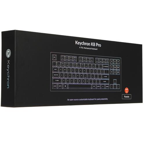 Клавиатура проводная+беспроводная Keychron K8 Pro – модель с кликающими переключателями Keychron K Pro Blue, которые оптимальны как для набора текстов, так и для игр. При нажатии такие клавиши создают ярко выраженное сопротивление при достижении точки срабатывания, что позволит точно определить момент, когда клавишу можно отпустить. Благодаря классическому черному цвету корпуса модель подойдет для строгого офисного интерьера, а мягкая RGB-подсветка позволит украсить ею игровой компьютерный стол.