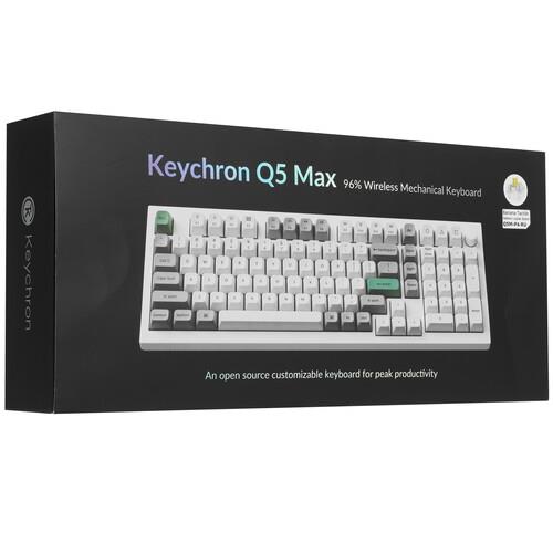 Металлическая кастомная клавиатура Keychron Q5 Max [Q5M-P4] в 96% раскладке с поддержкой QMK/VIA и беспроводным подключением 2,4 ГГц, идеальна для игр и повседневного использования. Корпус выполнен из фрезерованного алюминиевого сплава, верх и низ которого соединены при помощи двойного gasket mount, обеспечивающего подвижность всей конструкции при печати.