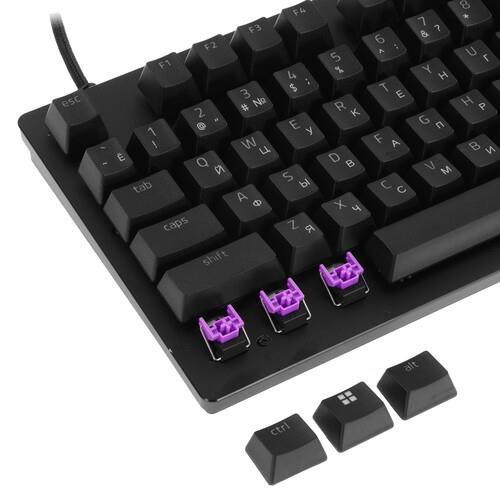Клавиатура проводная Razer Huntsman V2 [RZ03-03931300-R3R1] оснащена кликающими переключателями Purple, которые удобны во время набора текстов и прохождения игровых сессий. Интегрированная RGB-подсветка не допускает погрешностей ввода в условиях слабого освещения. Синхронизация аксессуара сопровождается использованием 2-метрового USB-кабеля.