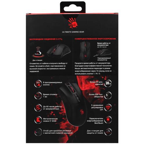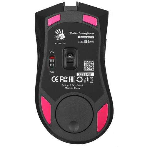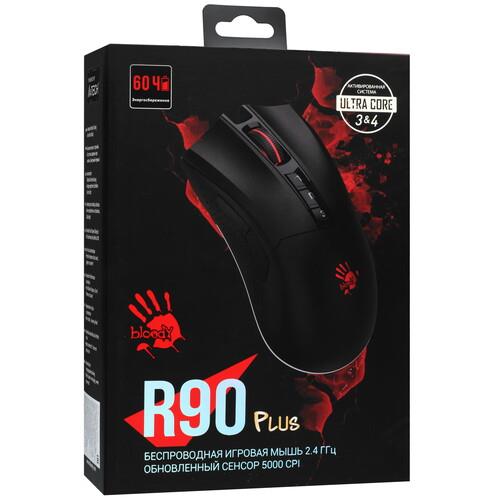 Беспроводная мышь A4Tech Bloody R90 Plus получила в свое оснащение металлические ножки X'Glide, отличающиеся прочностью, чувствительностью и способностью устранять трение при использовании манипулятора практически на любой поверхности. По своей форме и весу устройство идеально подходит для управления правой рукой. В основе безупречной работы мыши лежит оптический светодиодный сенсор BC3332-S, максимальное разрешение которого достигает 5000 dpi.
