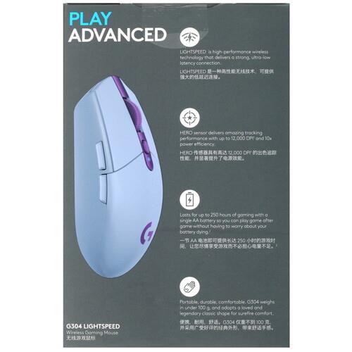 Оснащенная 6 программируемыми кнопками мышь беспроводная Logitech G304 [910-006026] отличается эффектным дизайном, оформленным с помощью сочетания сиреневого и фиолетового цветов. Модель подходит для использования в видеоиграх. Оптический светодиодный сенсор HERO, входящий в оснащение манипулятора, обеспечивает разрешение до 12000 dpi. Такая точность позиционирования курсора поможет вам эффективно противодействовать реальным и виртуальным противникам. Заслуживает внимания и максимально допустимое ускорение мыши, равное 40 G.