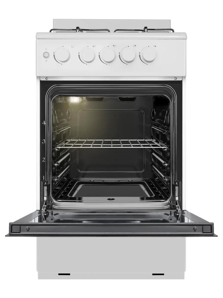 Механический таймер с звуковым оповещением помогает точно выдерживать время приготовления блюд в духовке. Эргономичные переключатели обеспечивают плавную регулировку пламени конфорок.