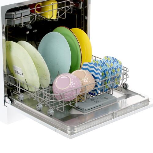 Посудомоечная машина Hyundai DT505 оптимальна для небольшой семьи. Модель характеризуется долгим сроком эксплуатации и простотой использования. Модель рассчитана на загрузку 8 комплектов посуды. Для тарелок, кружек и столовых приборов предусмотрены отдельные выдвигающиеся корзины. Пользователь может задать необходимое время работы с помощью функции отсрочки запуска.