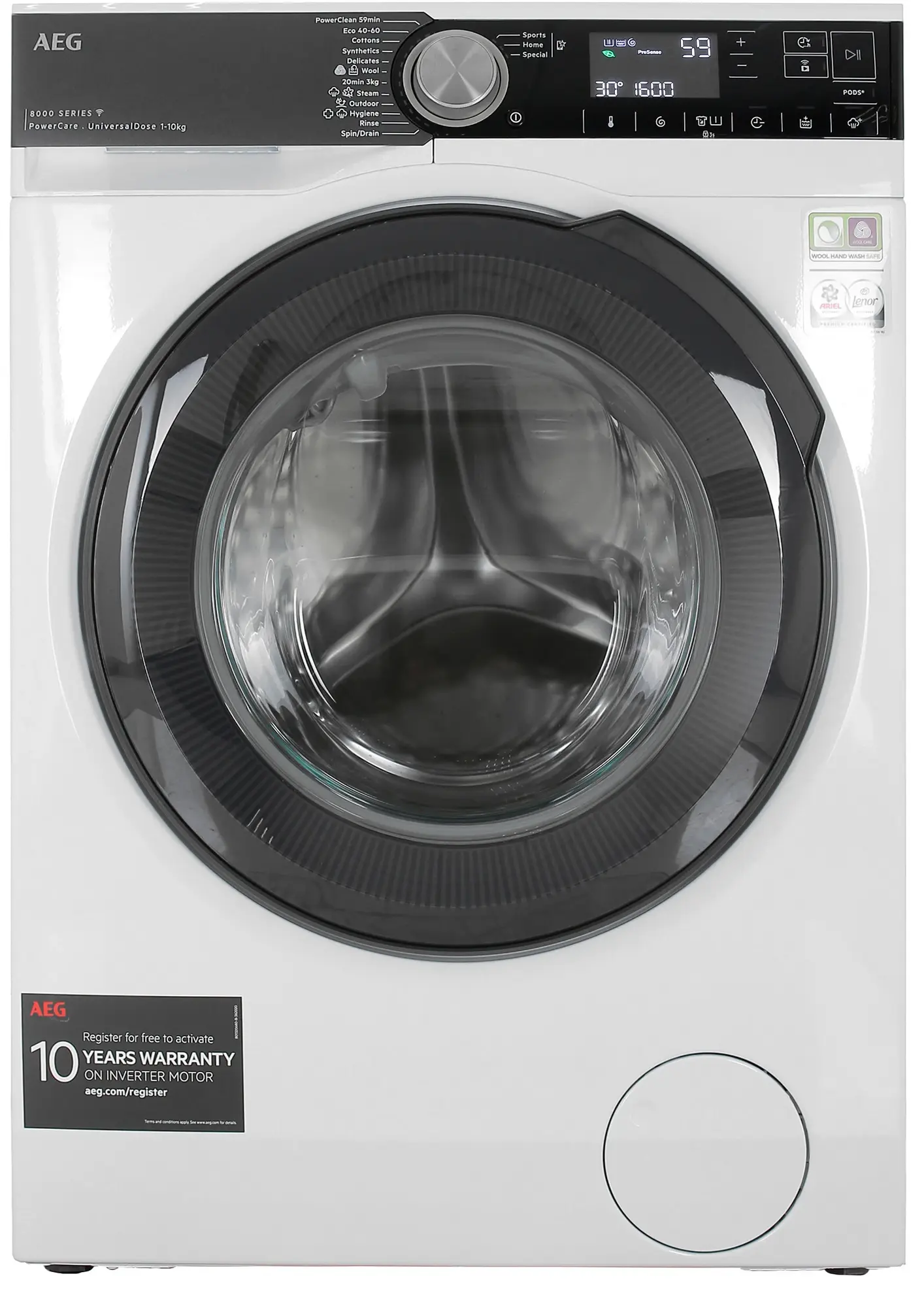 Стиральная машина AEG LFR85166OE с фронтальной загрузкой на 10 кг оснащена инверторным двигателем для сокращения затрат на электричество и уровня издаваемого шума. Доступ к 12 программам производится через сенсорную панель управления или приложение AEG. Возможность регулировки температуры обеспечивает бережный уход за шерстью и шелком.