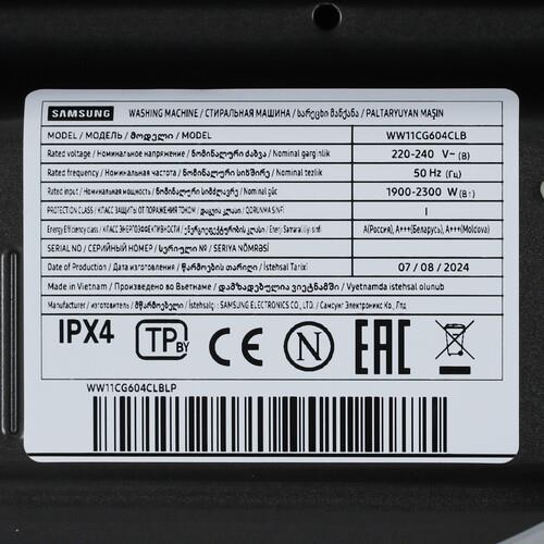На панели управления стиральной машины Samsung WW11CG604CLBLP расположены поворотный регулятор выбора программ, сенсорные кнопки и дисплей. Приложение SmartThings предоставляет возможность удаленной настройки со смартфона. Инверторный двигатель обеспечивает стабильную работу и экономичное потребление энергии.
