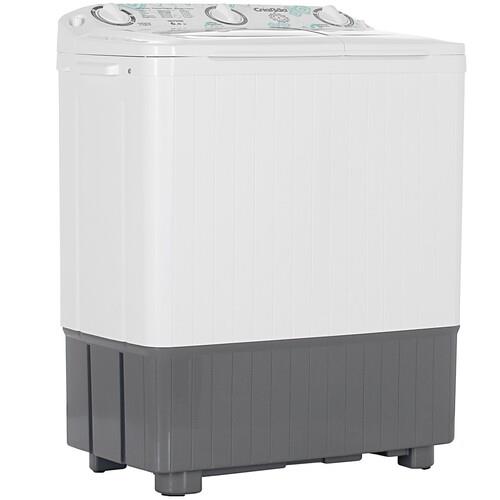 - Удобство: Вертикальная загрузка и две откидные крышки обеспечивают легкий доступ к отделениям для стирки и отжима.