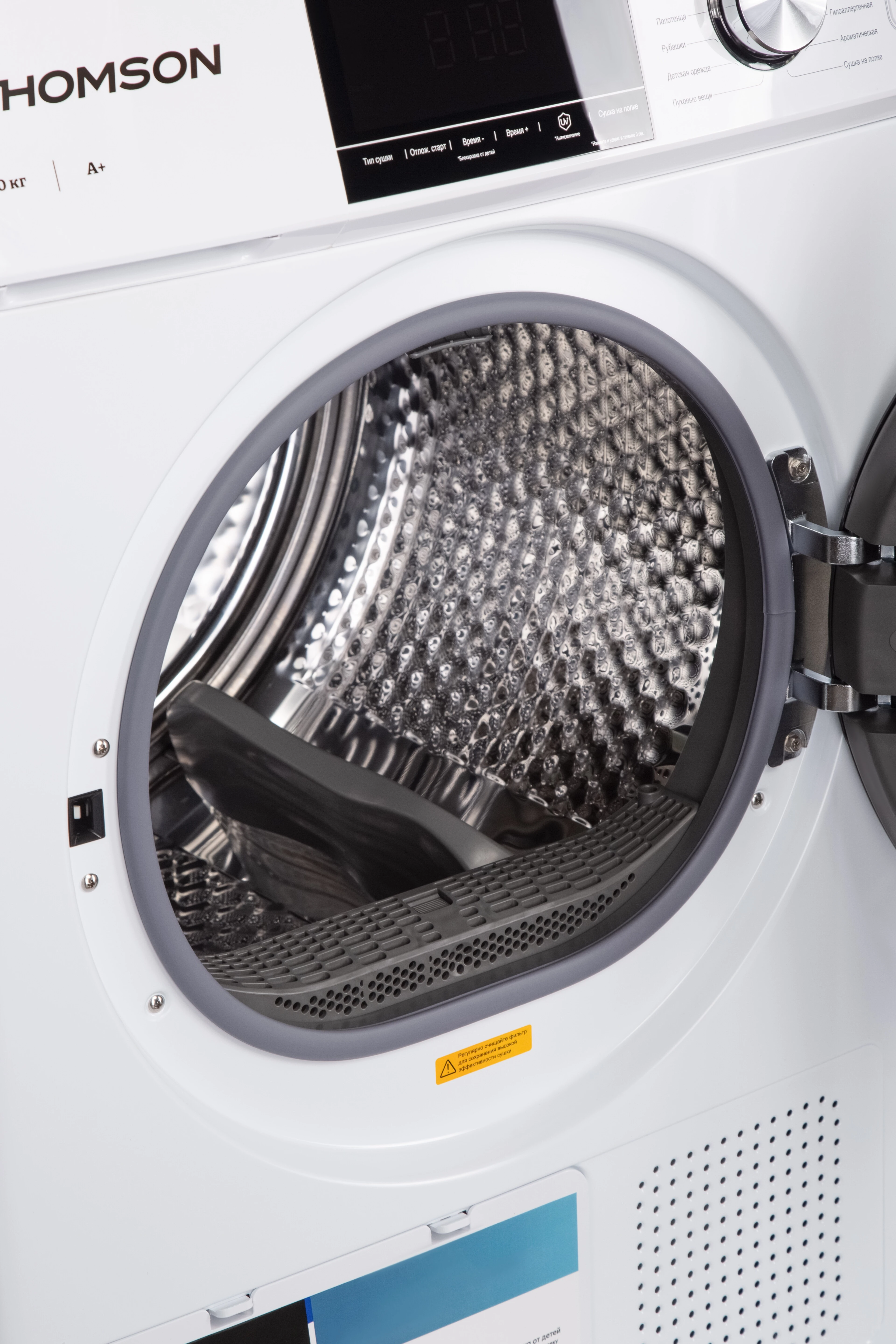 Модель рассчитана на сушку до 10 кг белья за один цикл, что делает её идеальным выбором для большой семьи или тех, кто предпочитает стирать и сушить белье большими партиями.