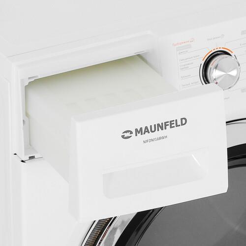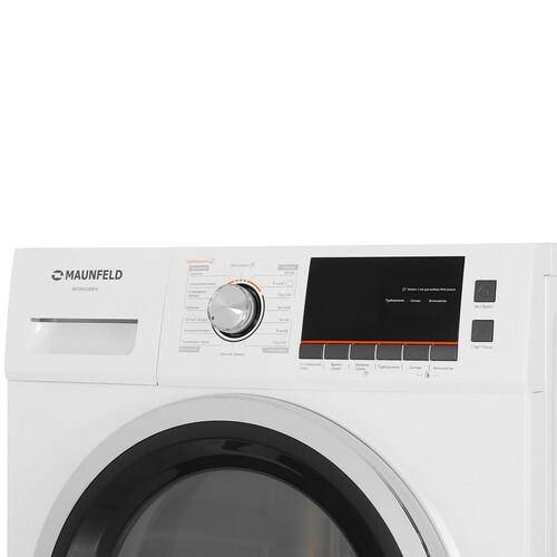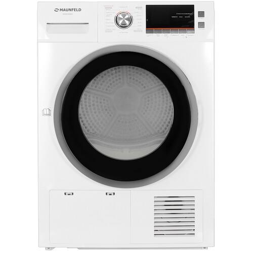 В барабан машины MAUNFELD MFDM168WH можно поместить до 8 кг влажного белья. Благодаря поддержке 16 программ можно выбрать оптимальный режим сушки в зависимости от типа ткани. Управление устройством реализовано через электронную панель с дисплеем и кнопками. Для выбора программы используется поворотное колесо.