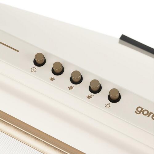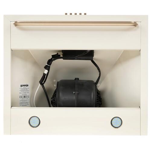 Вытяжка каминная Gorenje WHC63CLI выполнена в металлическом корпусе с расцветкой «слоновая кость» и дополнена золотистыми декоративными элементами. Благодаря производительности 650 м³/ч она обеспечивает тщательную очистку воздуха от пара, копоти, жировых частиц, запахов. Кнопочная панель позволяет устанавливать подходящий для конкретного объема приготовления режим интенсивности очистки из 3 доступных.