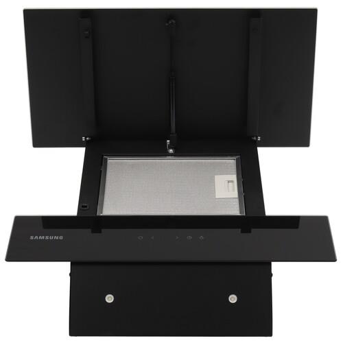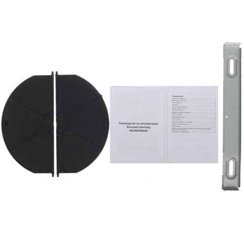Вытяжка Samsung NK24N7060VB с декоративным дымоходом может работать на 3 скоростях, регулировать которые можно с помощью сенсорной панели на передней части корпуса. Для удобства готовки еды на плите на вытяжке предусмотрены 2 светодиодные лампы.