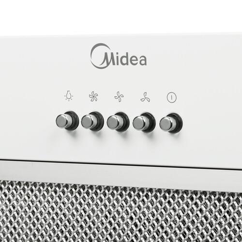 Вытяжка полновстраиваемая Midea MH60I301W в белом металлическом корпусе имеет светодиодную лампу мощность 1.5 Вт, которую можно использовать как дополнительный источник освещения с наступлением сумерек. Подключение устройства к сети осуществляется через 1.85-метровый кабель. Предусмотренный конструкцией фильтр грубой очистки поглощает жировые брызги и не допускает оседания на внутренних деталях.