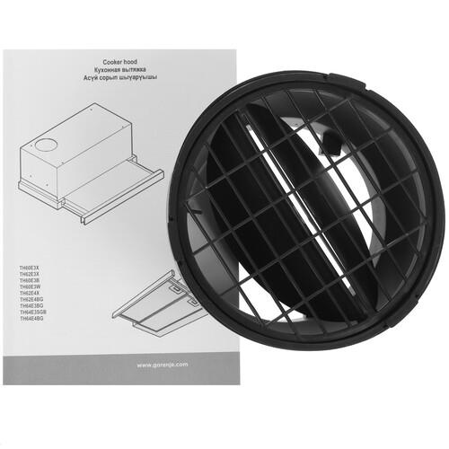 Оборудование Gorenje TH64E3SGB оснащено мотором на 108 Вт, позволяющим достигать производительности 350 м³/ч. Прибор дополнен тремя скоростями, легко управляемыми с помощью удобной сенсорной панели. Эффективность очистки воздуха обусловлена наличием жирового фильтра.