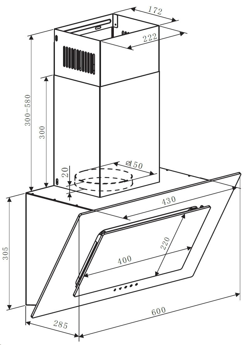 - Диаметр воздуховода: 15 см.