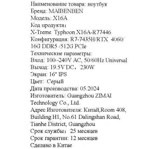 Maibenben X16A-R77446