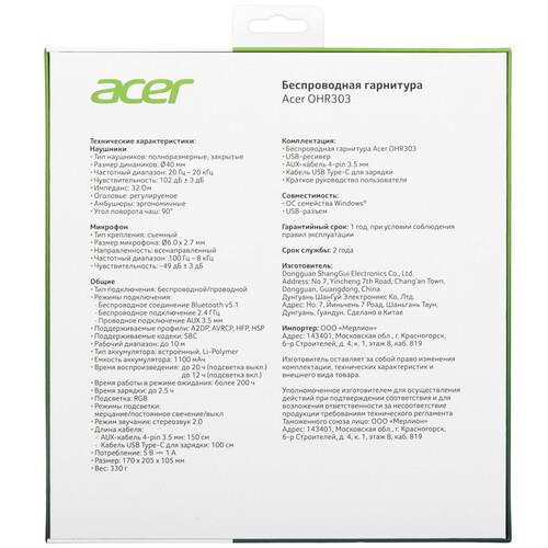 Гарнитура Acer OHR303 – это функциональное устройство, которое станет незаменимым помощником в работе и развлечениях. Гарнитура Acer OHR303 оснащена беспроводным подключением, что обеспечивает свободу движений и удобство использования. Радиус действия беспроводной гарнитуры составляет 10 метров, что позволяет комфортно общаться с собеседниками на значительном расстоянии. Устройство имеет встроенный аккумулятор емкостью 1100 мАч, что обеспечивает до 12 часов работы на одном заряде. Это позволяет использовать гарнитуру в течение длительного времени без необходимости постоянной подзарядки.