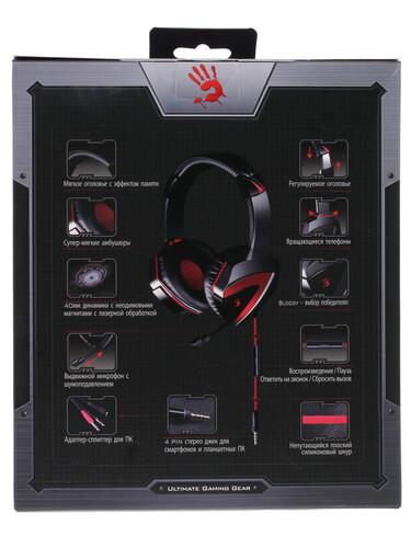 Модель A4Tech Bloody G500 оснащена микрофоном, имеющим тип крепежа «слайдер». Частота работы динамиков 20-20000 Гц. Производитель рекомендует данную модель начинающим геймерам и опытным игроманам, нуждающимся в мощной и надежной гарнитуре.