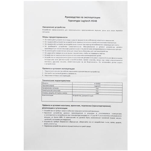 Logitech Headset H540 снабжены USB-кабелем длиной 1.8 метра.
