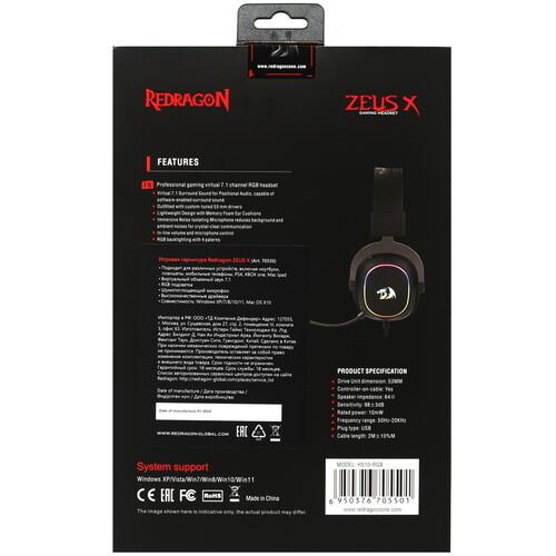 Проводные наушники Redragon Zeus X RGB черного цвета имеют закрытый дизайн, мягкие амбушюры и регулируемое оголовье. Наушники изолируют от внешнего шума и позволяют погрузиться в игровой процесс или прослушивание музыки. Звуковая схема 7.1 Virtual выдает объемный звук, который помогает точно определять положение источников звука в игре. Наушники совместимы с Nintendo Switch, PlayStation 4 и Xbox One. Закрытые наушники плотно облегают уши и создают герметичное пространство для звука, что предотвращает утечку звуков наружу. Redragon Zeus X RGB воспроизводят широкий спектр частот от 50 Гц до 20 кГц. Импеданс 64 Ом обеспечивает баланс между мощностью и чувствительностью. Двухметровый кабель в тканевой оплетке защищен от перегибов и повреждений. Настраиваемая светодиодная подсветка создает атмосферу в игровом процессе. Подвижный микрофон с функцией шумоподавления и ветрозащитой предоставляет чистое общение в игровых чатах и голосовых звонках. Встроенный регулятор громкости позволяет настроить уровень звука под свои предпочтения.
