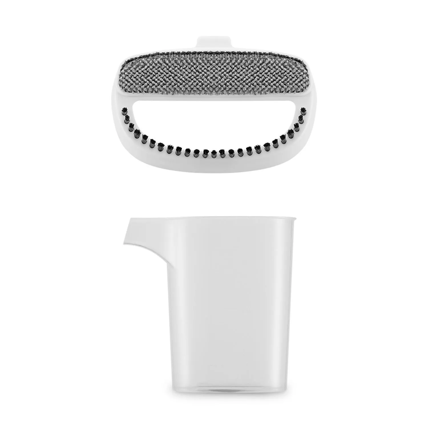 В комплекте предусмотрена ворсовая насадка, которая поможет очистить вещи от пыли, ворса, волос и шерсти домашних животных. Для удобства заполнения резервуара для воды в комплекте есть мерный стакан.