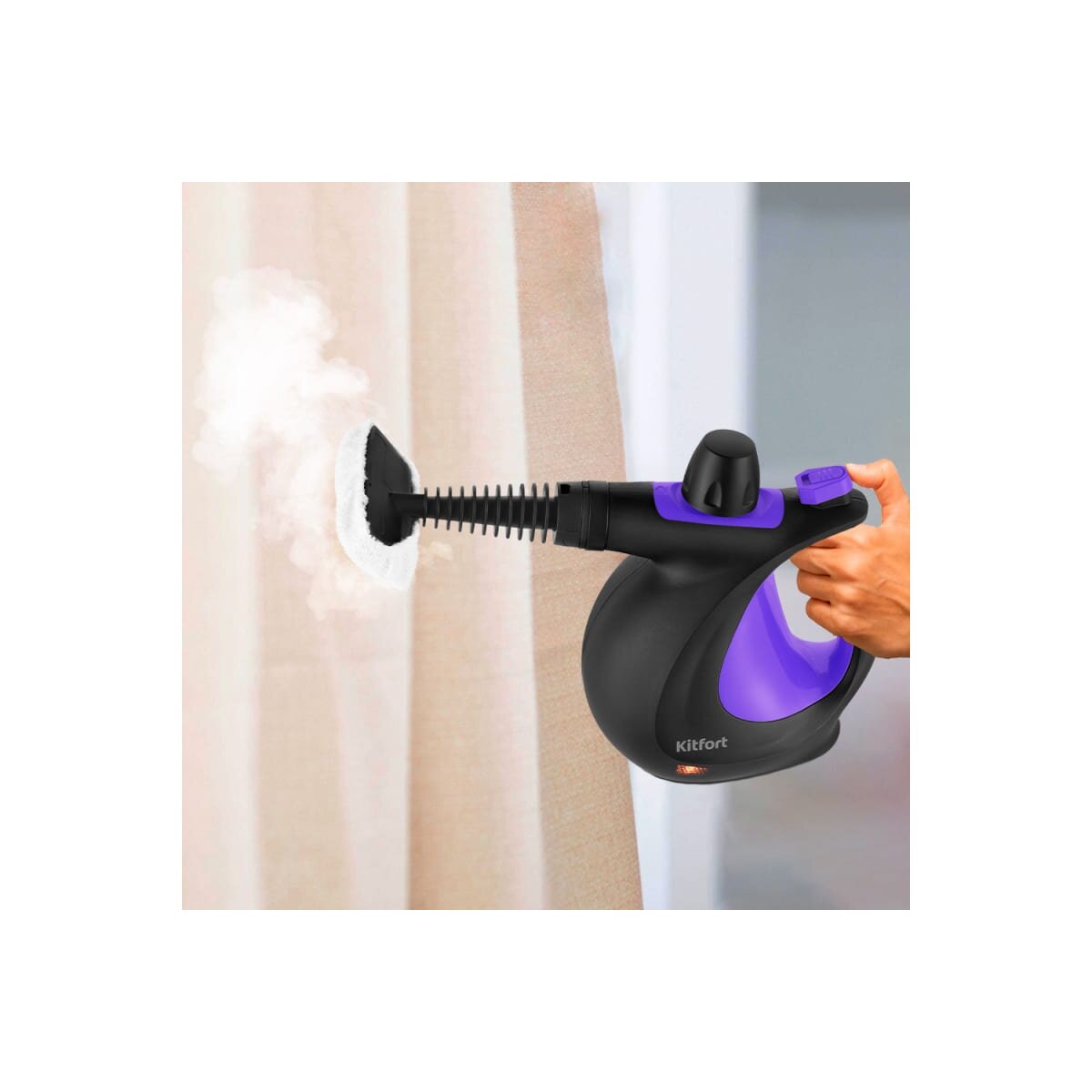 Пароочиститель КТ-9195 предназначен для уборки интерьеров, полов и поверхностей, выдерживающих влагу и высокую температуру, а также для отпаривания тканей.