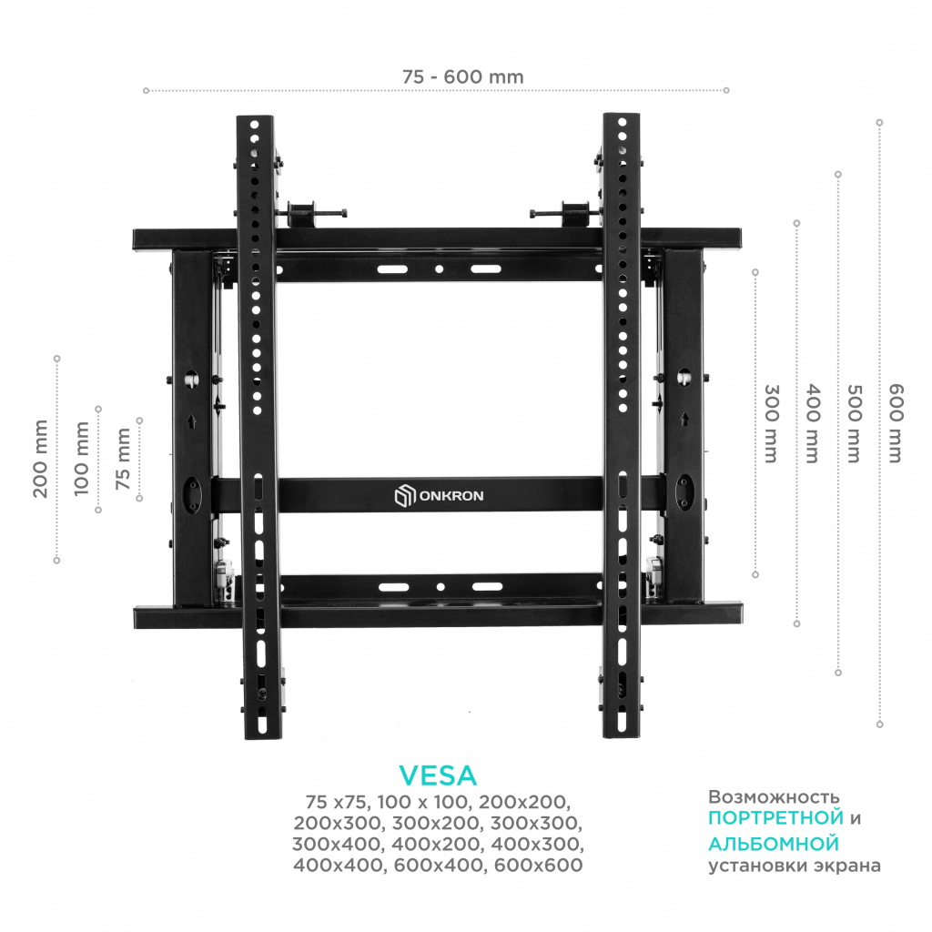 Стандарт Vesa: 100x100, 200x100, 200x200, 300x300, 400x400, 600x400, 75x75
