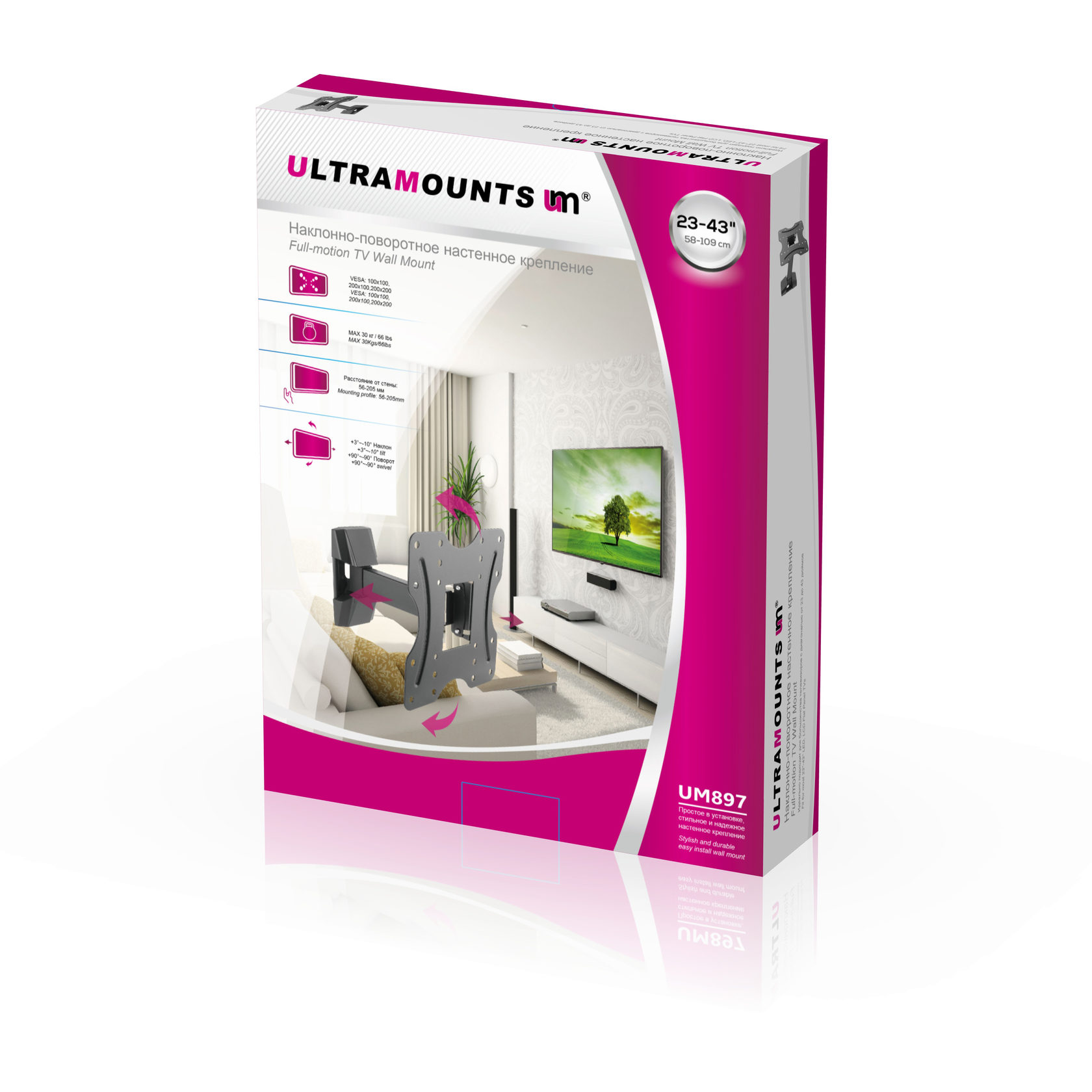Диагональ экрана: 23" - 43"