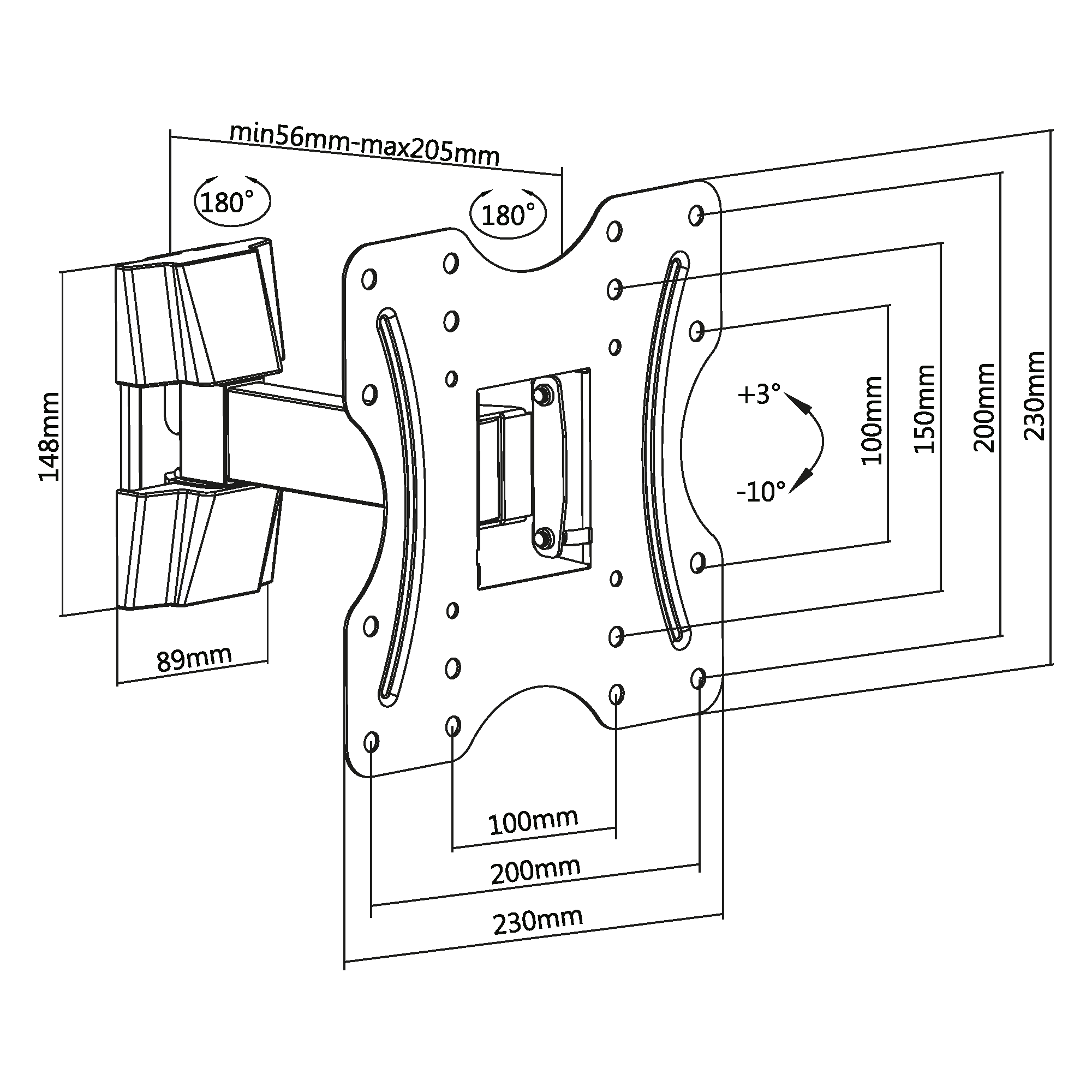 Расстояние от стены: 56~205 мм