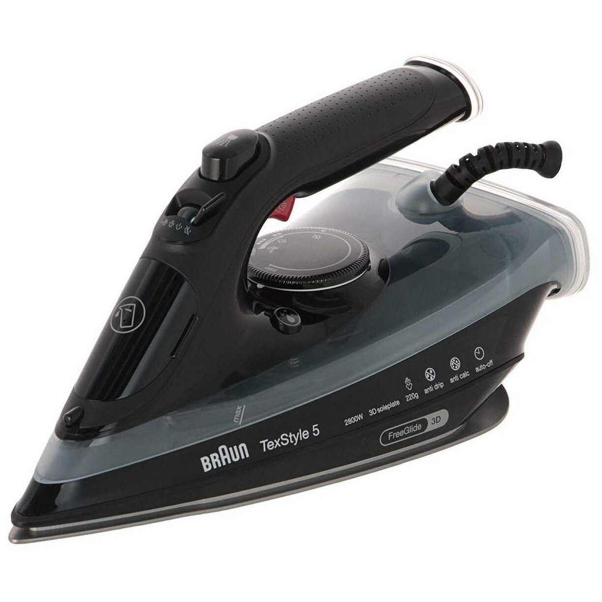 Основные характеристикиБрендBraunМощность2800 ВтМатериал подошвыкерамикаВертикальное отпариваниеестьАвтоматическое отключениеестьДополнительные функцииавтоматическая регулировка пара, паровой удар, постоянная подача пара, регулировка подачи пара, регулировка температуры, система самоочистки, сухая глажка, функция разбрызгиванияЗащитаот накипи, противокапельная системаКонструкцияОбъeм резервуара для воды300 млДлина сетевого шнура2 мРасход при постоянной подаче пара50 г/минРасход при паровом ударе200 г/минВес и габаритыРазмерыДхШхВ: 32х14х16.50 смВес1.6 кгПрочееОсобенностишаровое крепление шнураУникальные технологииFreeGlide 3D