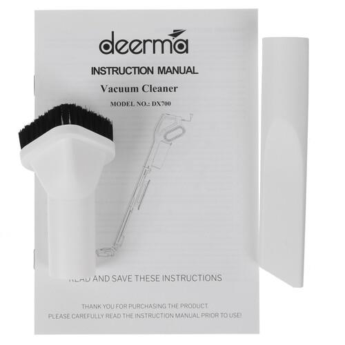 Рукоятка эргономичной формы позволяет с комфортом удерживать пылесос под любым углом. В комплекте с Deerma DX700 поставляются универсальная насадка для уборки гладких напольных покрытий и ковров, щетка для мебели и щелевая насадка. Из других преимуществ отмечается низкий уровень шума в процессе работы.