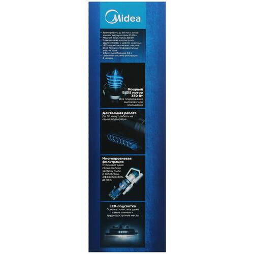Вертикальная конструкция и съемные части гарантируют удобство в использовании. Контейнер объемом 0.6 л без труда снимается при необходимости очистки. Одного заряда аккумулятора достаточно для 60 минут автономной работы Midea VSS3500.