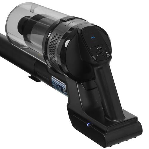 Пылесос вертикальный Samsung VS20B75ACR5/EV работает от Li-Ion-аккумулятора. Благодаря его ресурсу устройство работает от 3 до 60 минут. Для восполнения заряда батареи требуется 210 минут. Корпус сконструирован для удобства уборки, имеет цельную металлическую трубку. На ручке находится регулятор мощности для быстрой настройки прибора.