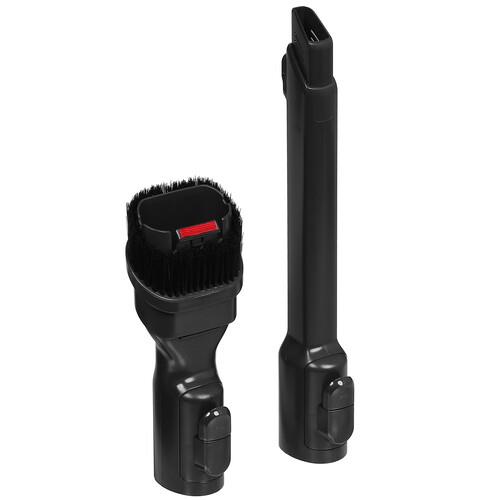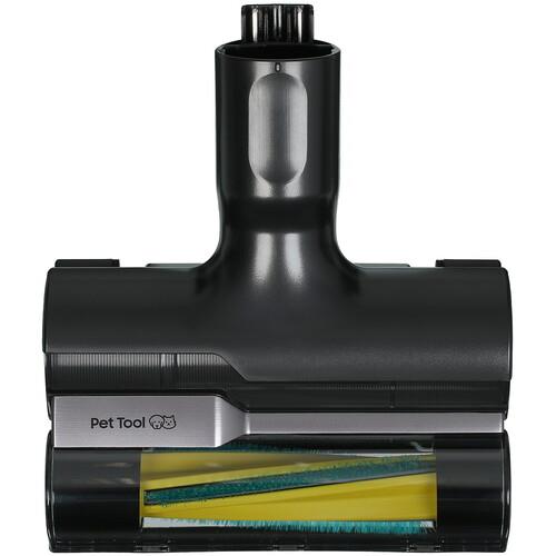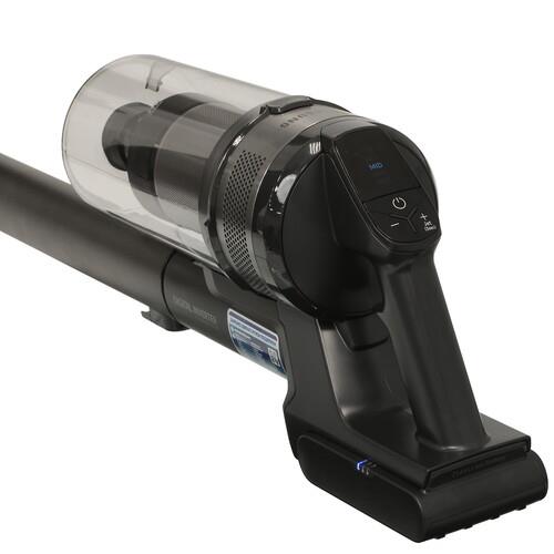 На ручке находится LED-дисплей. На нем отображаются сведения об оставшемся времени работы АКБ, мощности всасывания, предупреждения и подсказки для пользователя. При помощи вращающейся щетки с влажными тряпками удобно очищать и полировать пол. Турбощетка хорошо убирает шерсть, волосы с любых покрытий.