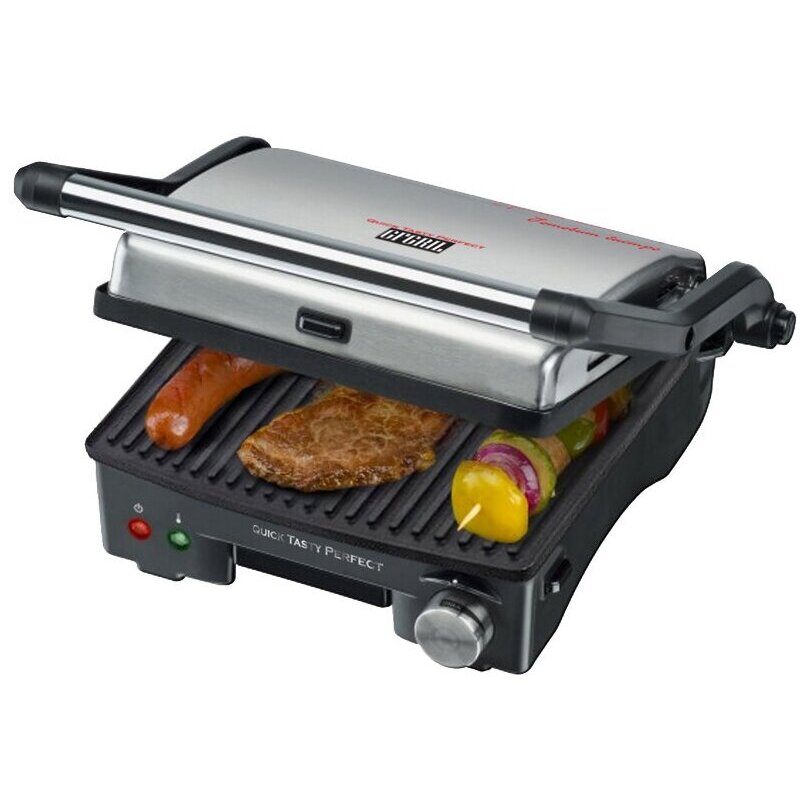 GFgril GF-130 Plate Free позволит в домашних условиях пожарить мясной, рыбный стейк и аппетитные овощи на гриле, а также поможет приготовить много других вкусных блюд. Благодаря антипригарным панелям продукты на него можно выкладывать, не используя масло — пища получится сочной, нежной и не будет содержать вредных для здоровья канцерогенов и холестерина. Мощность этого электрогриля составляет 1800 Вт, поэтому продукты будут готовы к подаче на стол гораздо быстрее, чем при приготовлении на плите или в духовке. В комплектацию с устройством входит поддон для сбора сока и жира, а жарочные панели легко снимаются для мытья. Температуру можно регулировать, выбирая оптимальный режим в зависимости от вида продуктов.