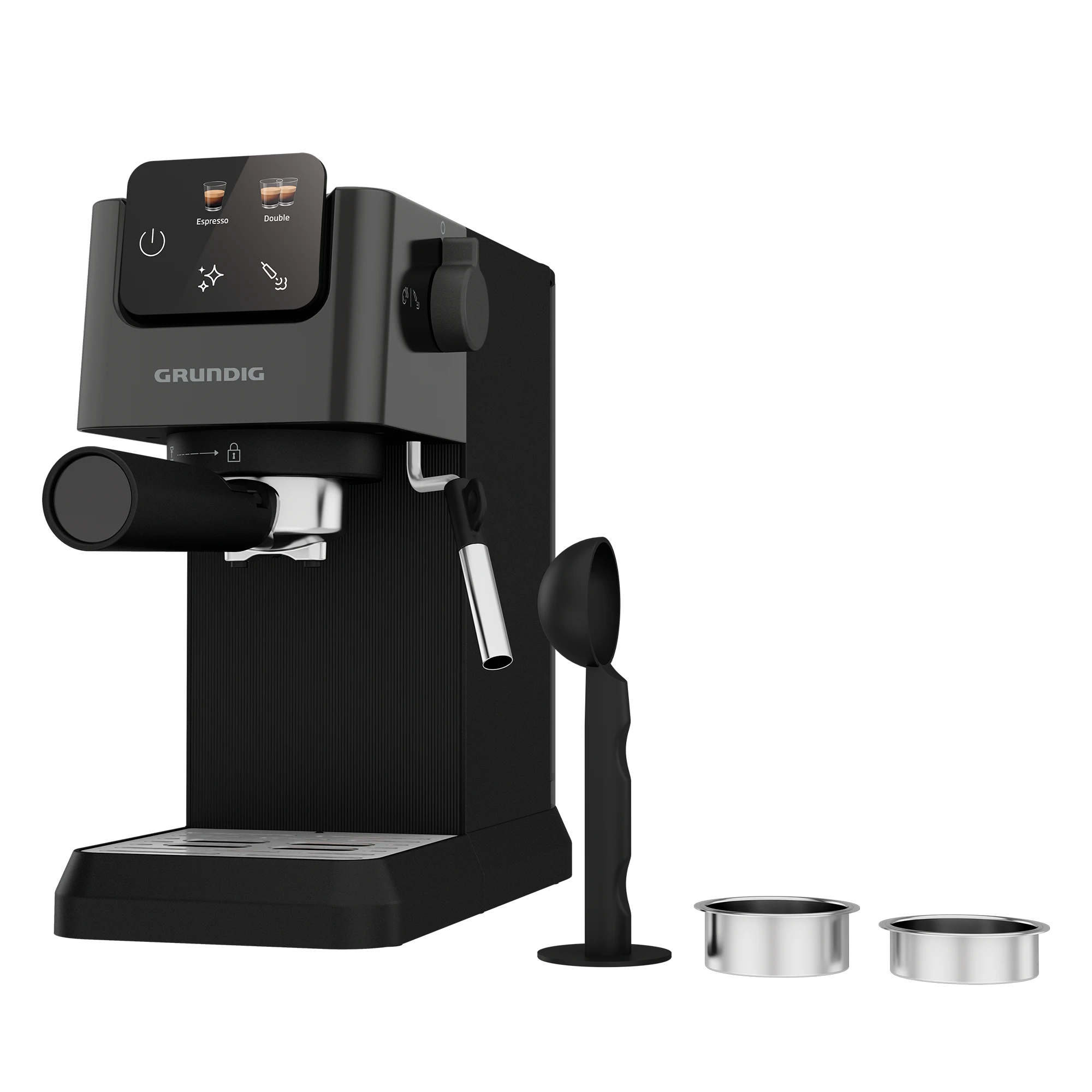 Рожковая кофеварка Grundig KSM 4330 — компактное решение для ценителей качественного ароматного кофе. Оснащенная ручным капучинатором, она позволяет создавать пышную молочную пену для приготовления капучино или латте, как в любимой кофейне. Сенсорный дисплей обеспечивает интуитивно понятное управление, предоставляя быстрый доступ ко всем функциям устройства.