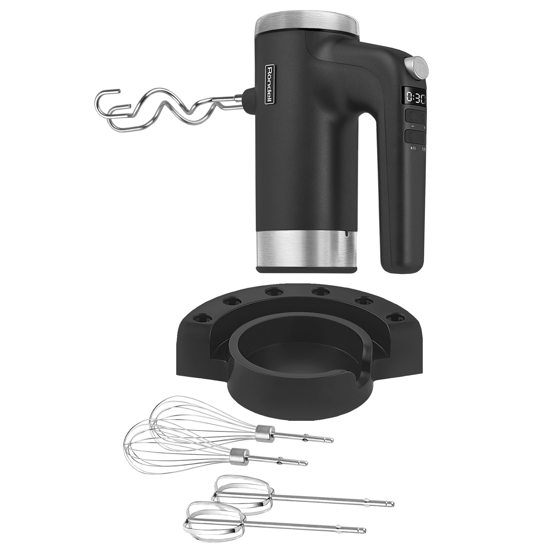 В комплект входят 3 набора насадок из высококачественной нержавеющей стали, которые прослужат долге годы. Насадки легко снимаются одним нажатием специальной кнопки и компактно хранятся на эргономичной подставке. Купите миксер RDE-1351, который позволит не просто готовить, а заниматься кулинарным творчеством!
