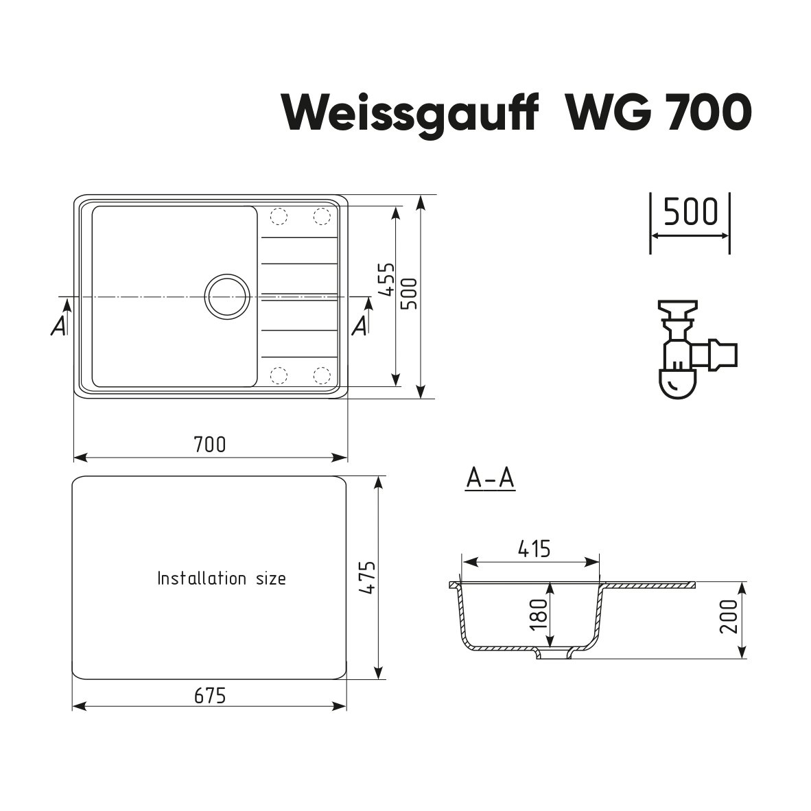Габариты мойки, мм:700 х 500 х 200