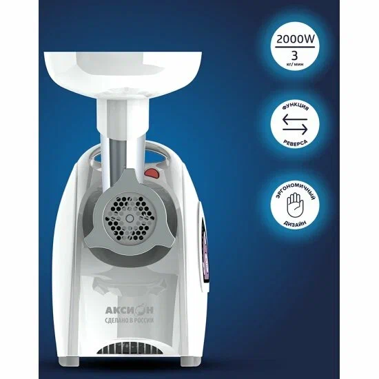 ОсобенностиРеверсДаВид насадкиДля фарша, Соковыжималка, Насадка-овощерезкаСистемы защитыЗащита от перегрузки (автоматический предохранитель)Конструктивные особенностиОтсек для шнура, Отсек для насадок, Прорезиненные ножкиОбщиеТипМясорубкаПартномер316146Страна-изготовительРоссияТехнические характеристикиПроизводительность, кг/мин3Мощность, Вт2000Количество скоростей1Длина шнура, м1.5МатериалМатериал корпусаПластикМатериал лоткаПластикДополнительныеЦветБелый