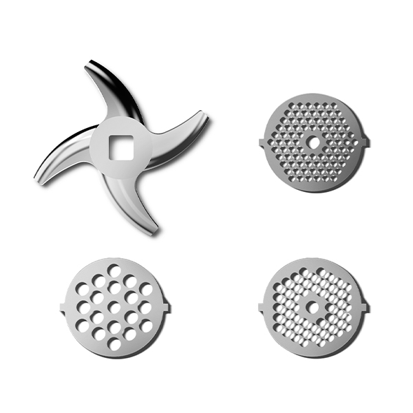 Моторный блок, блок мясорубки, шнек мясорубки, нож мясорубки, фиксирующее кольцо, перфорированные диски для различных видов фарша (2 шт.), загрузочный лоток, крышка загрузочного лотка, система хранения насадок, толкатель, основание насадки для кеббе и колбасок, формирующая насадка для приготовления кеббе, формирующая насадка для приготовления колбасок, блок овощерезки, толкатель овощерезки, крупная терка, терка для драников, шинковка, шнек соковыжималки, насадка-соковыжималка с фильтром и регулятором выхода жмыха, защитная крышка фильтра соковыжималки, лоток для выхода сока, приспособление для очистки дисков мясорубки, бургер-пресс, руководство по эксплуатации,